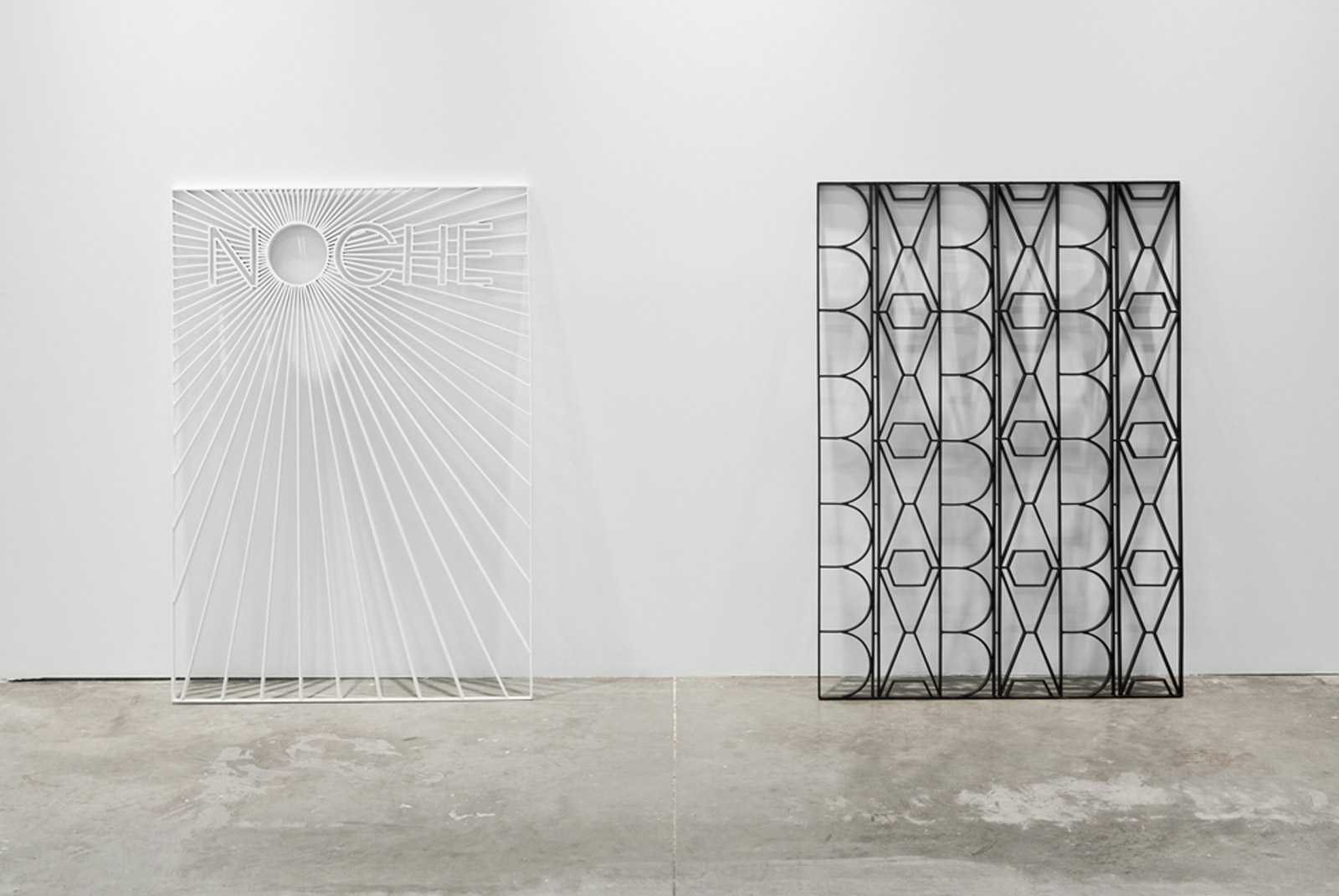 Imagen: Noche (después de Ziraldo), 2012, hierro lacado, 150 x 105 x 2.5 cms. / Día, 2012, hierro lacado, 150 x 105 x 2.5 cms.