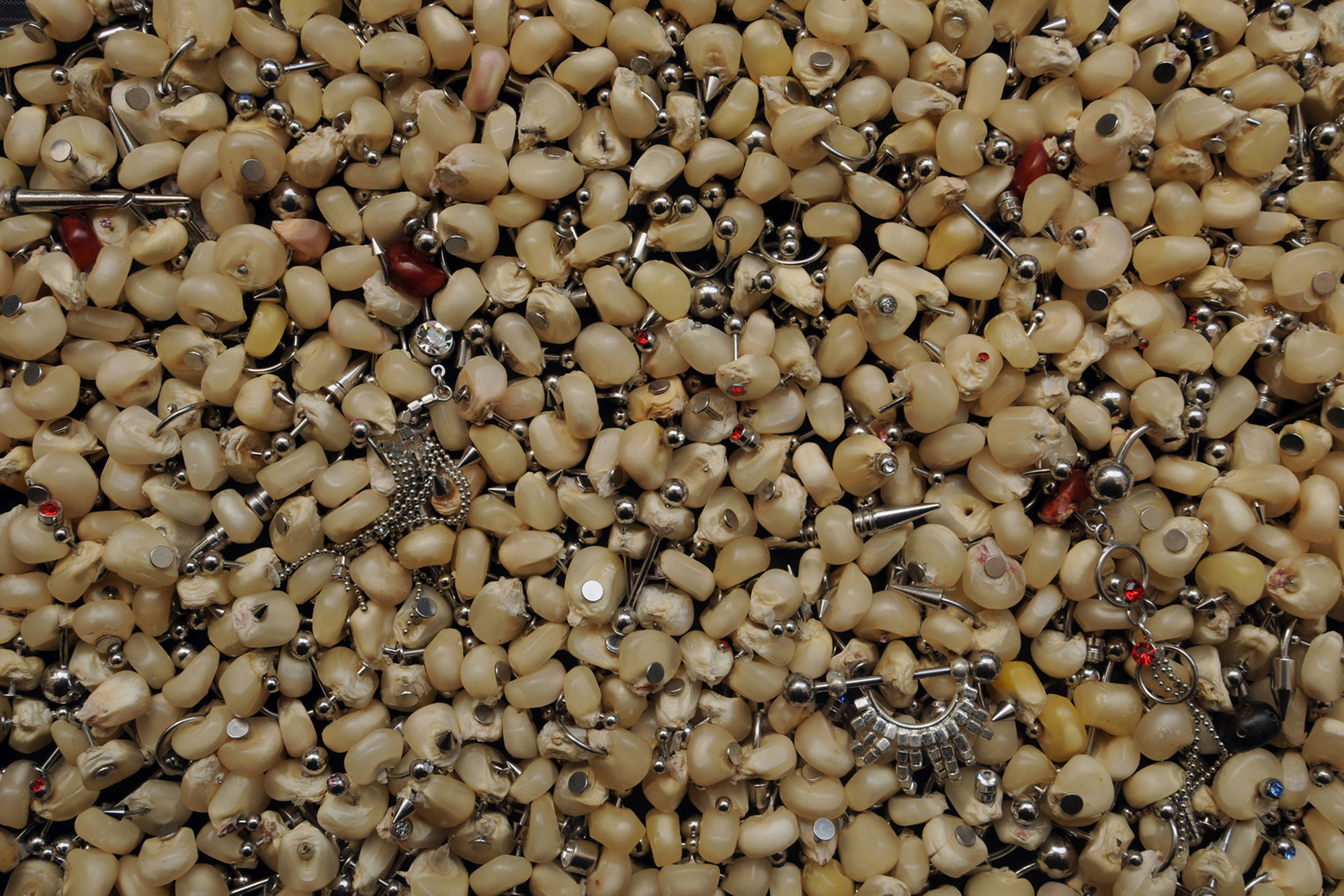 Mapa que muestra los vínculos entre artistas según medios de producción y países afines. Se muestra a los artistas colombianos (parte superior izquierda) como un núcleo sin conexiones, y a México (imagen en el centro) con una gran afluencia entre artistas. Centroamérica está representado por algunos artistas en la esquina inferior derecha.