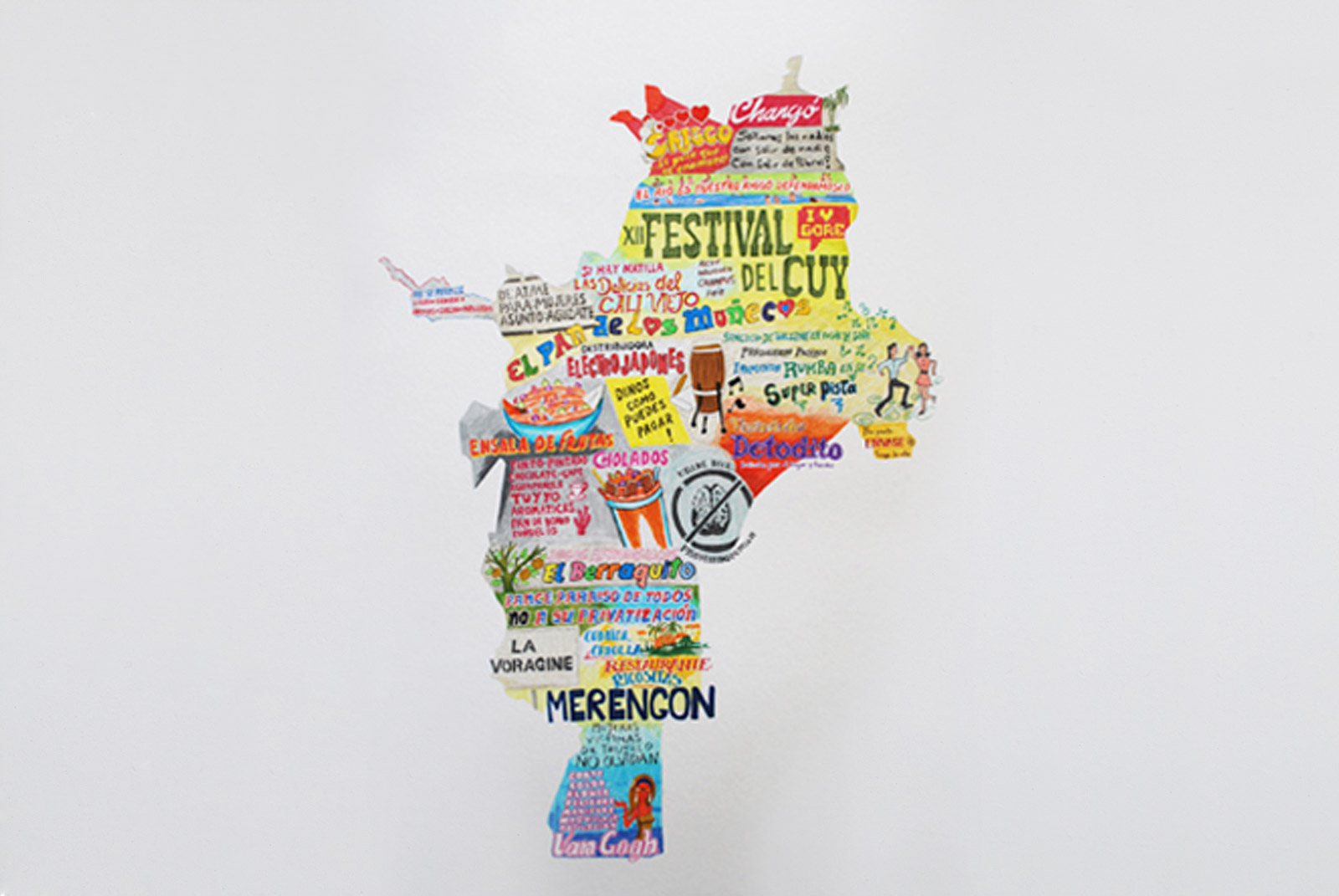 Proyecto en curso con dibujos elaborados a partir de fotos tomadas en diferentes ciudades por donde he viajado en los últimos años. La selección de imágenes que conforman estos mapas se nutre de lo visto en la calle: diferentes tipografías, códigos y estéticas, que podemos asociar con preocupaciones, modismos y características específicas de cada ciudad visitada/retratada. El mapa sirve de borde reconocible de un territorio particular, pero la geografía desaparece, así como las ideas que sobre sí misma pueda querer dar cada ciudad pues los discursos oficiales o turísticos son relegados por las expresiones culturales que se pueden recoger en las esquinas, en los muros más abandonados y en los barrios más boyantes. La serie incluye hasta ahora las ciudades de Cali, Medellín, Bogotá, Sao Paulo, Río, Buenos Aires y Santiago de Chile.