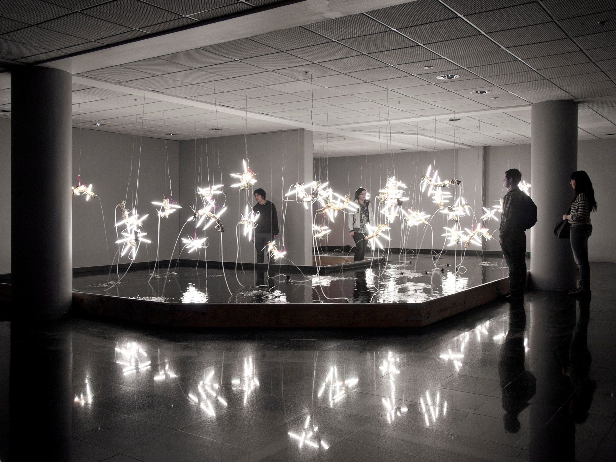 El Proyecto ADN se construye a partir de tres elementos básicos: el agua, la luz (electricidad) y los huesos, para enfatizar lo siniestro producido por la vibración entre la belleza y el horror. // The DNA Project is built from three basic elements: water, light (electricity) and bones, to emphasize the production of something sinister in the vibration between beauty and horror.